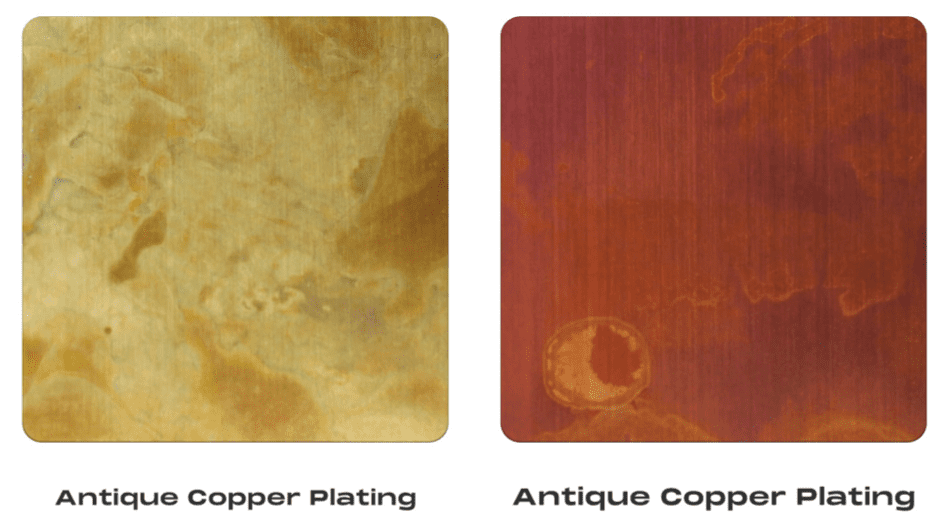 Медь антик – это отделка, которую мы можем создать, побуждая медь образовывать патину, которая делает поверхность тусклой и темной. Мы можем контролировать процесс, чтобы добиться нужного оттенка античной меди. Обычно это широкий спектр коричневых и бронзовых оттенков, а также яркие контрастные оттенки зелени.