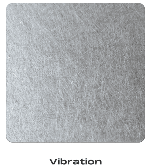Вибрация – это метод обработки металла (полировки), который создает закрученный узор на поверхности нержавеющей стали. Поверхность шлифуется, но при шлифовке направления движения инструмента хаотичны. Благодаря такой обработке на стали появляется тонкая текстура, которая напоминает «завихрения».