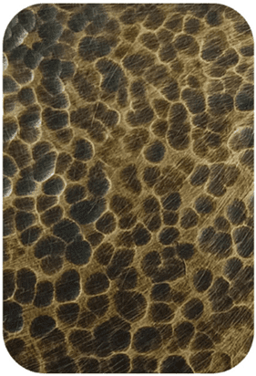- Благодаря особенностям технологии состаривания, каждый лист декоративной нержавеющей стали приобретает уникальный внешний вид. Повторить его невозможно, поэтому каждый фрагмент не имеет аналогов, как истинное произведение искусства.
