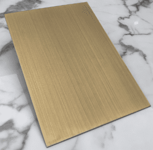 - Современные технологии позволяют разнообразить внешний вид листов из нержавеющей стали. Перекрестные линии можно дополнить покрытием PVD для придания металлу разнообразных цветов, можно также искусственно состарить металл, придав ему винтажный вид.