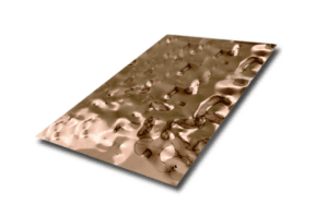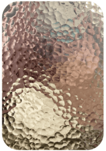 Лист нержавеющей стали, прошедший обработку при помощи ковки, приобретает узнаваемый трендовый облик. Молоткообразный инструмент ударяет по листу металла, оставляя на поверхности материала вмятины. Размер и форма вмятин могут варьироваться.