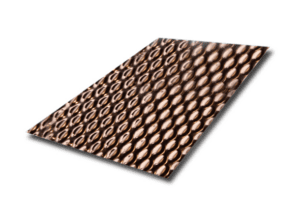 Лист декоративной нержавеющей стали обработан таким образом, что на его поверхности возникает рельеф. Чередование выпуклых и вогнутых участков создает уникальный дизайн. Обработка проводится при помощи тиснения. Готовый лист становится трехмерным и притягивает взгляды.