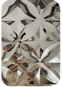 - Сочетание высокой прочности, износостойкости и визуальной привлекательности позволило листам нержавеющей стали прекрасно зарекомендовать себя в разнообразных проектах. Сталь с 3D-обработкой применяют для облицовки стен и колонн, изготовления арт-объектов, декорирования мебели и т.д. Материал придает пространству современный и уникальный облик.