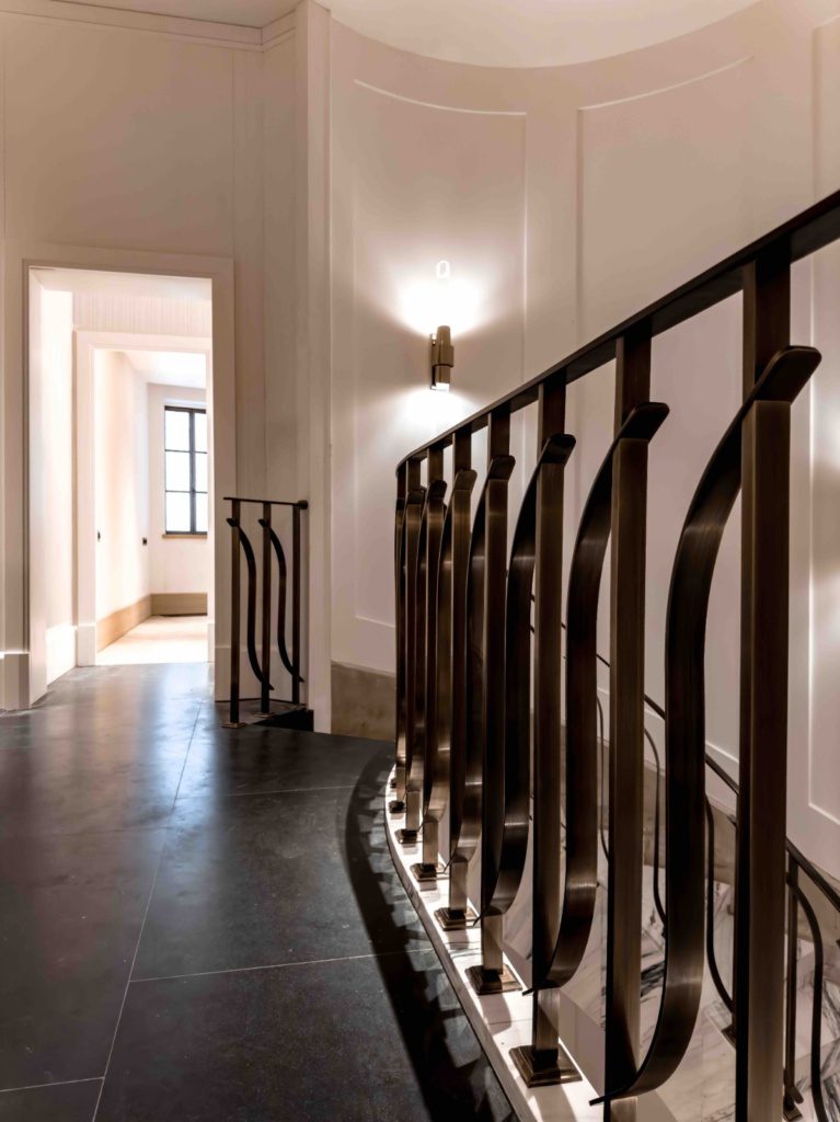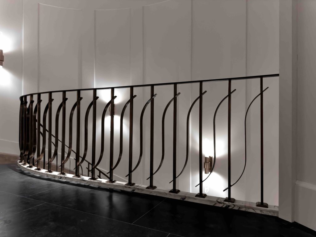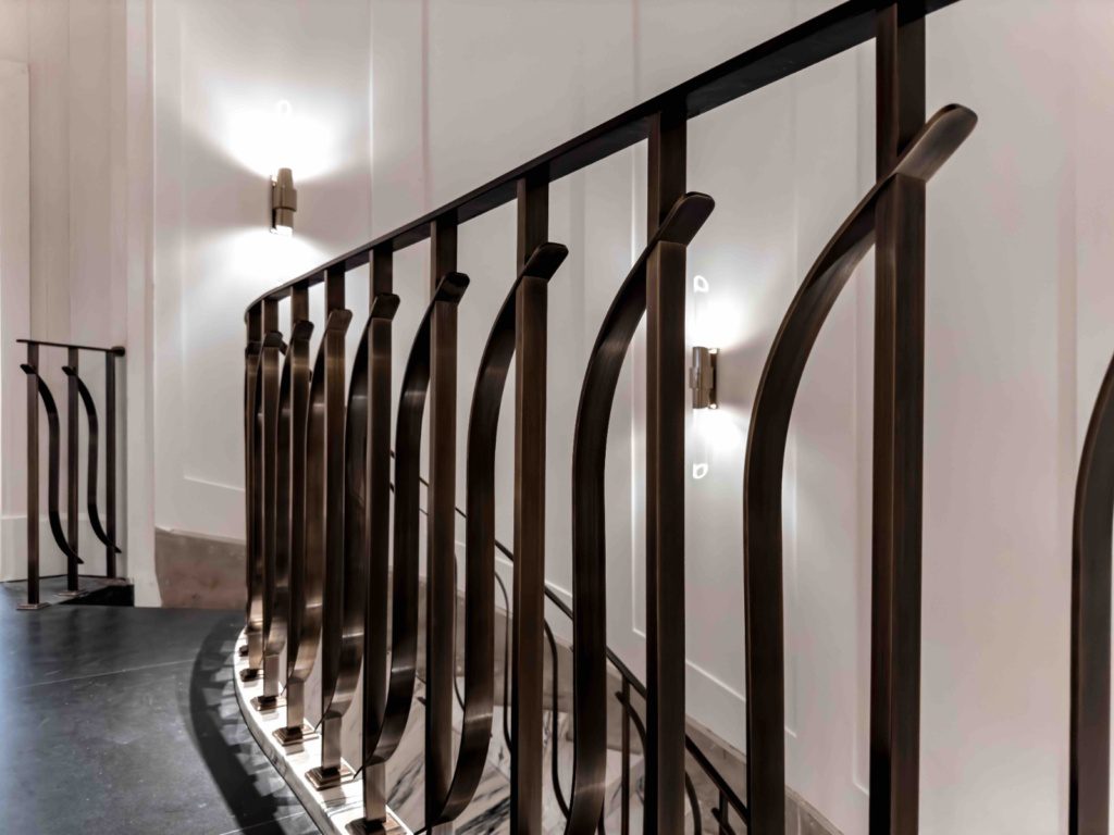 4 лестничных ограждения из латуни с патинированием в цвет архитектурной бронзы общей длиной 124 погонных метра