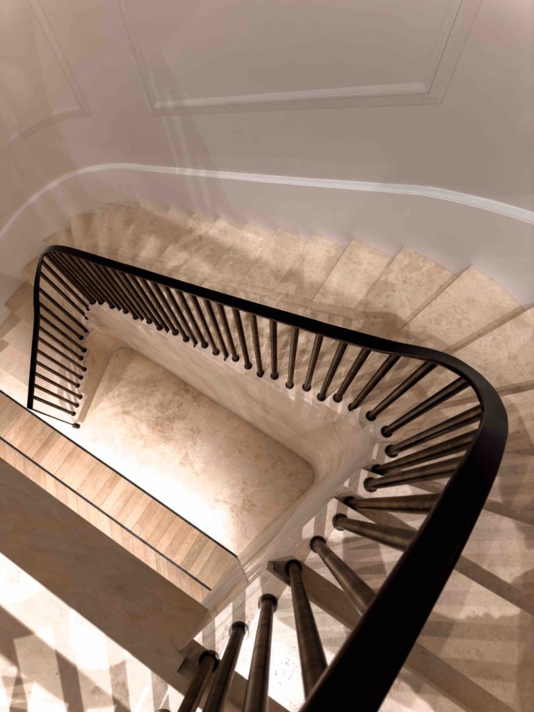 Архитектруная бронза для отеля BVLGARI , Москва. Лестица $. Вид сверху 5