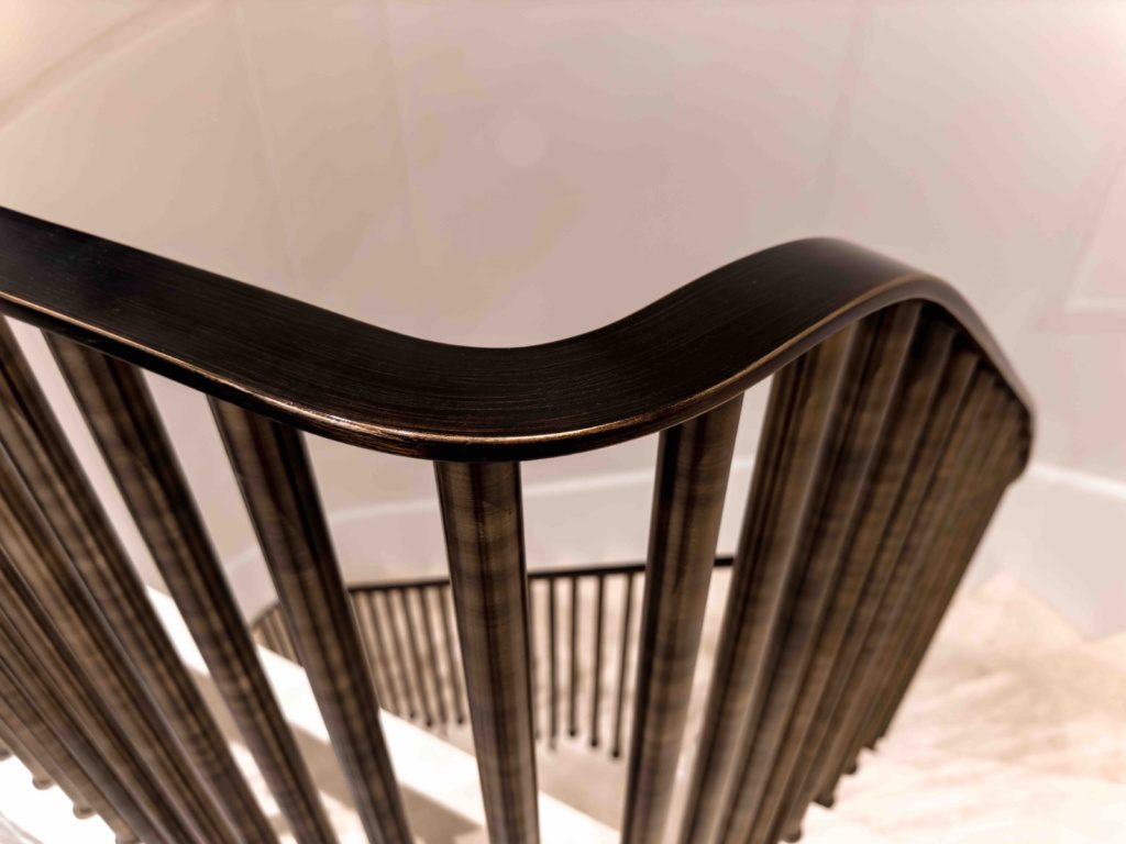 4 ограждения винтовых лестниц из латуни с патинированием в цвет архитектурной бронзы общей длиной 73 погонных метра для частных резиденций этого пространства