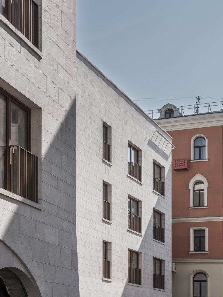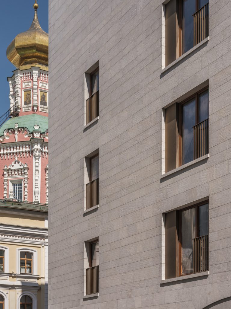 Архитектурный шедевр получил свой элегантный завершающий штрих. Ограждения идеально вписались в проект и дополнили тонкую стилизацию особняков под старинные здания и древние московские подворья.