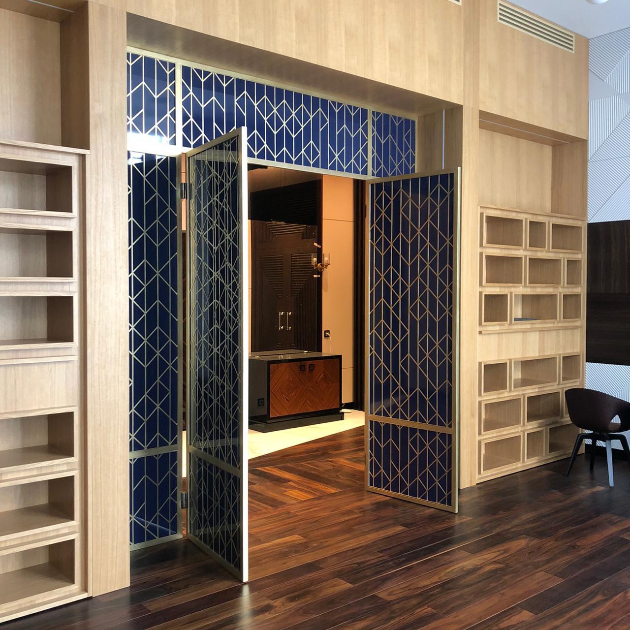 Наши латунные двери могут иметь разные поверхностные обработки, от зеркально полированных, создающих роскошный блеск, до матовых шлифованных, придавая дверям изысканный стиль и текстуру, а также матовых сатинированных, которые придают дверям особый шарм. Великолепная цветовая палитра наших дверей из латуни, достигаемая благодаря ручному патинированию, охватывает широкий спектр от глубокого черного и темно-коричневого до смелых оттенков синего и даже утонченной зелени.